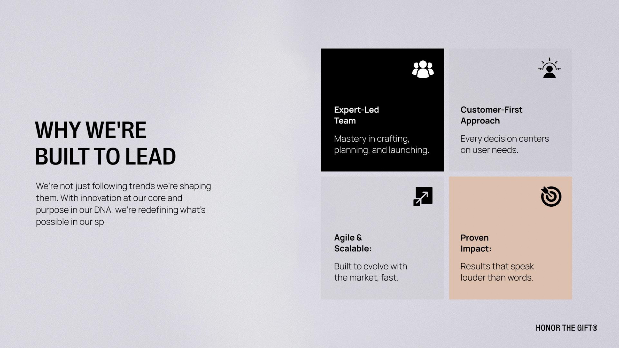 We design pitch decks that captivate and engage. Our approach combines strategic storytelling with eye-catching visuals, ensuring your message is not only heard but also remembered.
